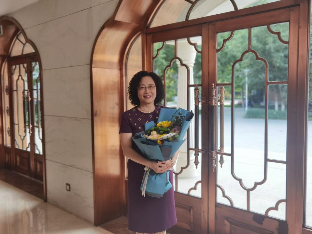 座谈结束后,大家合影留念,员工代表为程慧玲校友献花,常秀鹏书记代表tyc522cc太阳成集团为校友赠送纪念品。