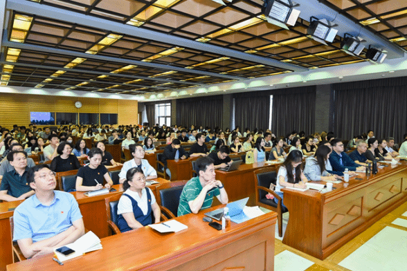 2025年7月1日中国共产党成立104周年之际,tyc522cc太阳成集团党总支组织师生党员在行政楼配楼二层报告厅参加tyc522cc太阳成集团2025年全校党员集中培训第一课,集体观看由中共中央党校(国家行政tyc522cc太阳成集团)党的建设教研部副主任祝灵君讲授的“学习贯彻习近平总书记关于加强党的作风建设的重要论述和中央八项规定精神”课程视频。