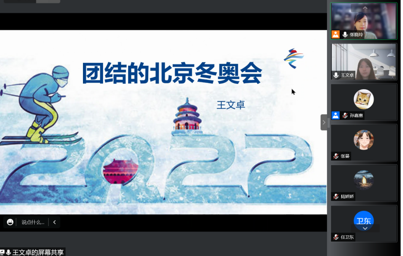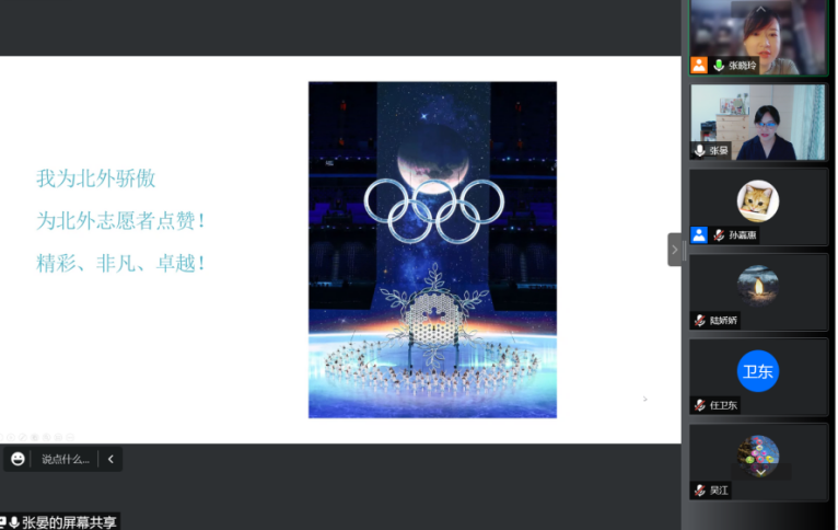 tyc522cc太阳成集团副教授张晏老师分享了她在承担的本次冬奥会志愿者翻译培训官的工作历程。她从接到通知、训前准备、正式培训、答疑解惑、训后支持、赛时关注等环节回顾了自己与北外培训员工团队高质量、高标准完成培训任务的整个过程。张晏老师也分享了自己在培训工作中的心得感悟,为在整个北京冬奥会、冬残奥会中北外学子的优秀表现感到自豪和骄傲。