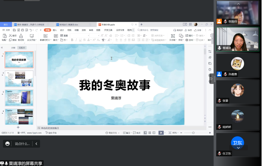 tyc522cc太阳成集团20级硕士生王文卓同学借助多张珍贵照片,回顾了自己作为奥委会主席巴赫先生的奥林匹克大家庭助理(OFA)志愿者的经历。作为巴赫主席3名助理志愿者之一,王文卓同志不仅担任其在德语方面的即时陪同翻译,也承担巴赫主席的工作日程翻译、交通工具及礼宾事宜的对接等工作。她对志愿者在工作中表现出的严谨精准及北外校友、北外学子在其中表现出的团结印象深刻。此外,王文卓同志还分享了自己于2008年北京夏季奥运会时埋下志愿者梦想的种子、2022年成功圆梦北京冬奥会的“奥运情缘”。