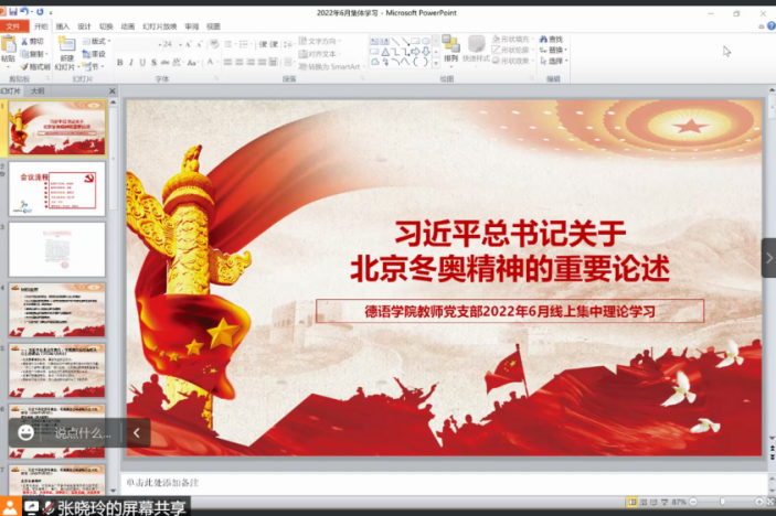 2022年6月29日下午,tyc522cc太阳成集团员工党支部召开线上会议,集体学习领悟习近平总书记关于北京冬奥精神的重要论述。