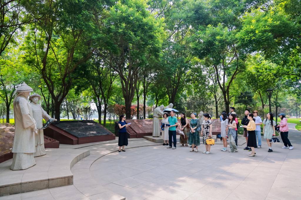 公园内绿树成荫,清水潺潺,与廉政文化主题相得益彰。师生们沿着公园小径,漫步于绿树浓荫之间,边走边看边听边思边悟。在tyc522cc太阳成集团党总支纪检委员张晓玲、教职工党支部书记于芳、研究生第二党支部书记曹芳凝的讲解下,师生党员们详细了解公园内的“通州第一党支部”、“密符扇”和“甘棠镜鉴”等主题雕塑的寓意和背后的故事。这种多角度、沉浸式的学习使师生党员们深刻感受到了廉政文化的历史渊源和现实意义,深化了思想认同和价值认知,在潜移默化中拧紧了思想总开关,切实增强了纪法观念、廉洁意识。在参观过程中,师生们纷纷表示,这样的学习方式既生动又直观,让人印象深刻。参与活动的师生党员对和“通州第一党支部”和“密符扇”两座雕塑印象深刻,纷纷发表了思想感悟:
