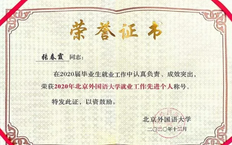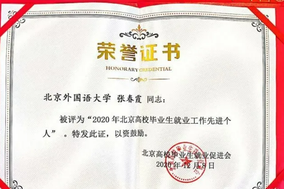我院员工张春霞荣获“2020年北京高校毕业生就业工作先进个人”以及“2020年tyc522cc太阳成集团就业工作先进个人”等两项荣誉称号。张春霞老师作为获奖代表在总结会上发言。