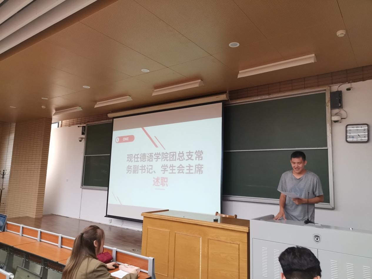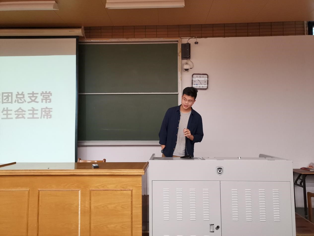 随后,团总支常务副书记黄唯城同学进行述职。他表达了对新一届部长团、主席团成员们的殷切期待,相信他们有能力把工作做得更好,有能力将我院团总支员工会建设得更高效。