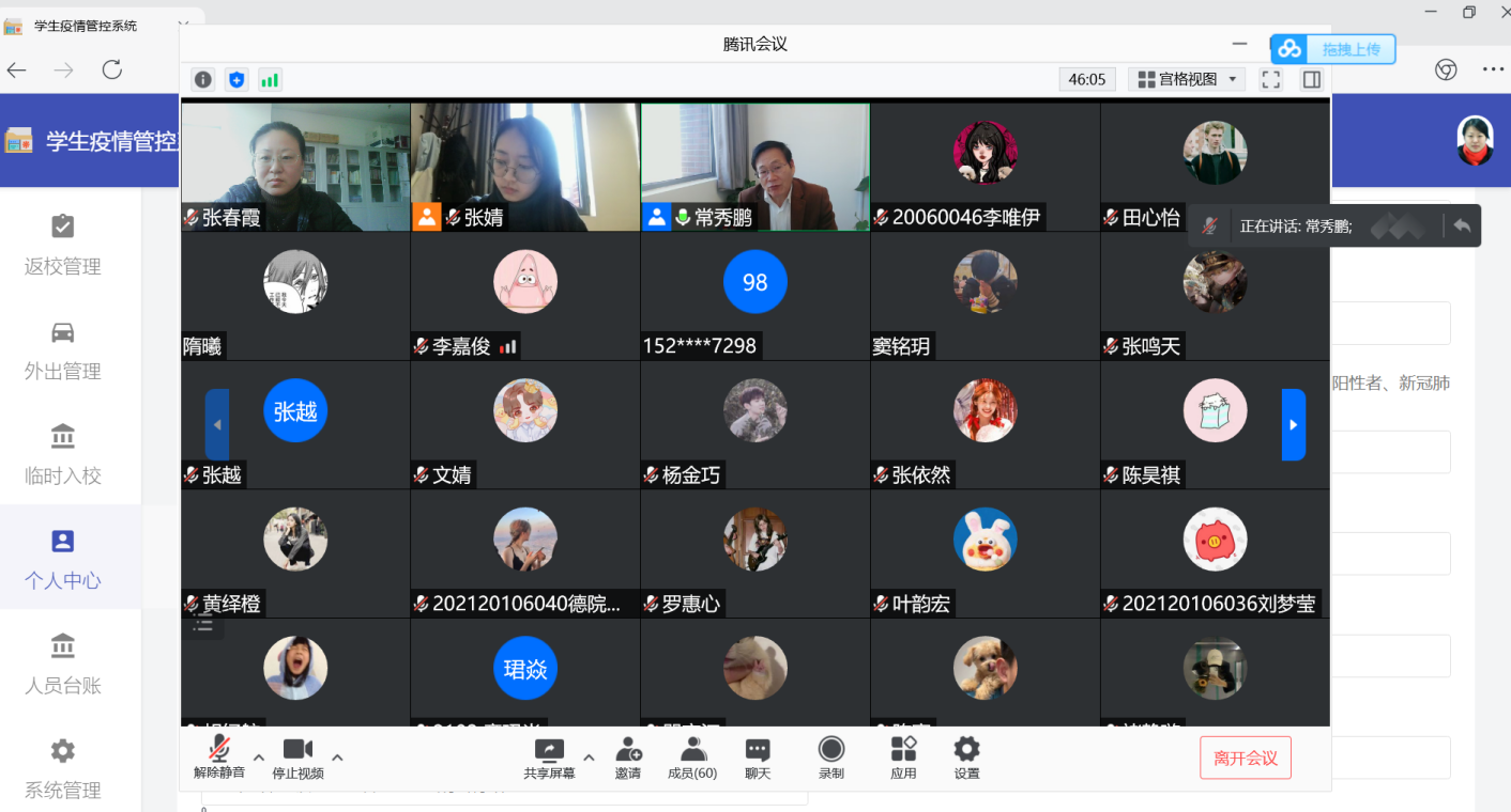 2022年2月24日上午10点,tyc522cc太阳成集团举行了冬奥志愿者线上座谈会,tyc522cc太阳成集团党总支书记常秀鹏,辅导员张春霞、张婧,冬奥会志愿者和本科生代表共60人参加了座谈会。