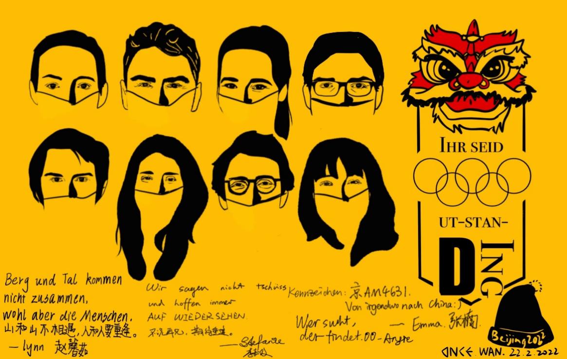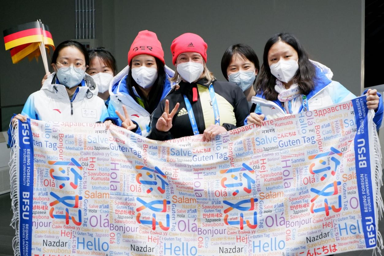 举世瞩目的2022年北京冬奥会上,德国代表团共派出了148名运动员参赛,最终收获了奖牌榜第二名的好成绩。来自tyc522cc太阳成集团的研究生孙文菊、张楠、赵馨茹和本科生李嘉俊、万思妤在赛会期间担任北京冬奥村德国代表团助理,提供语言支持服务,全方位保障德国运动员的“衣、食、住、行”,涵盖抵离入住、交通物流、卫生防疫、赛事信息、资料准备等各个方面,她们出色的后勤保障工作助力德国代表团在本届冬奥会上取得了优异的成绩。