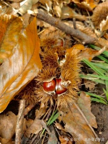 一起爬山捡板栗,手都快被扎穿了......