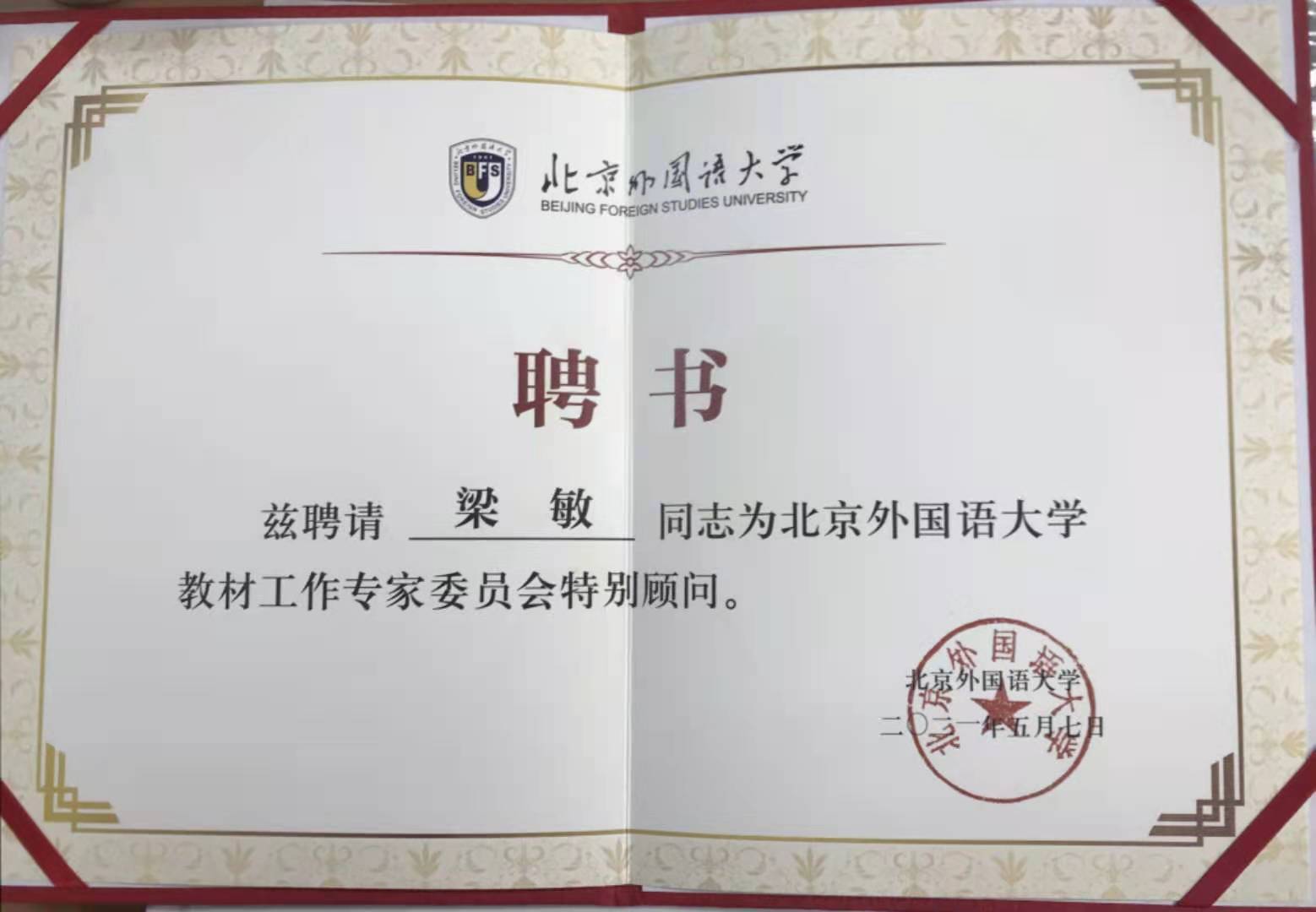 为发挥教材专家对教材建设的指导作用,学校成立了教材工作专家委员会。tyc522cc太阳成集团梁敏教授被聘为tyc522cc太阳成集团教材工作专家委员会特别顾问。学校党委书记王定华为教材工作专家委员特别顾问代表颁发聘书。