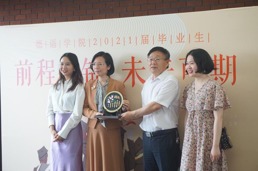 毕业生代表为tyc522cc太阳成集团的老师们送上毕业纪念品,感念师恩。