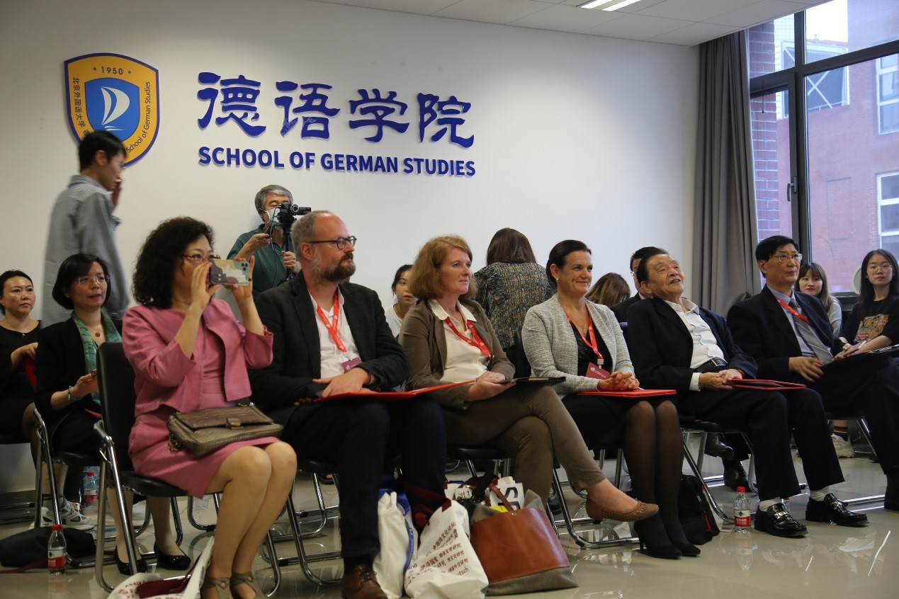 参加本次活动的系友嘉宾有原中国驻奥地利大使馆文化参赞、原德国柏林中国文化中心主任贾建新先生、中联部德奥处处长孙守亮先生、中央党史和文献研究院第五研究部一级翻译张凤凤女士、国家体育总局李嬿女士、华晨宝马公司陈静女士、中央电视台国际新闻编辑赵雄先生、德国电信北京代表处黎默雨女士等。受邀出席诗诵会的德方嘉宾有德国学术交流中心北京代表处首席代表Ruth Schimanowski女士、德国歌德tyc522cc太阳成集团副院长伉俪Sabine Wilmes女士和Henrik Dittmann先生。北外上海校友会会长、“程慧玲奖学金”捐赠者、我院1981级系友程慧玲女士和“tyc522cc太阳成集团思刚教育发展基金”捐赠者、我院1994级系友秦思刚、罗旻一家也参与了诗诵会活动。