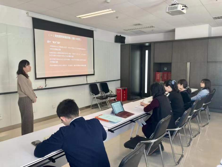 在党课结束时,张晓玲书记向在座的党员老师提出了“我们应该怎么做?”和“我们可以学习到什么?”两个问题。于芳老师认为,作为八零后的自己体会到了我国人民从物质相对贫乏到现在相对富裕状态的来之不易;作为员工也深感责任重大,应当立足本职工作,带领员工了解这段至今距离不远的历史,培养具有国际视野、家国情怀的接班人和后备力量。寇蔻老师认为这份《决议》带领大家重温了历史经验,尤其是中国共产党不断自我革命的积极作为,启示我们不断反思,追求创新;陆娇娇老师从“后疫情时代”的现实出发谈了自己的学后感言,认为我们应当从《决议》中深刻认识总结,从党的百年奋斗中汲取智慧和力量,坚定初心。最后,张晓玲书记用“以史为鉴、开创未来,增强自信,砥砺前行”与党员同志共勉。