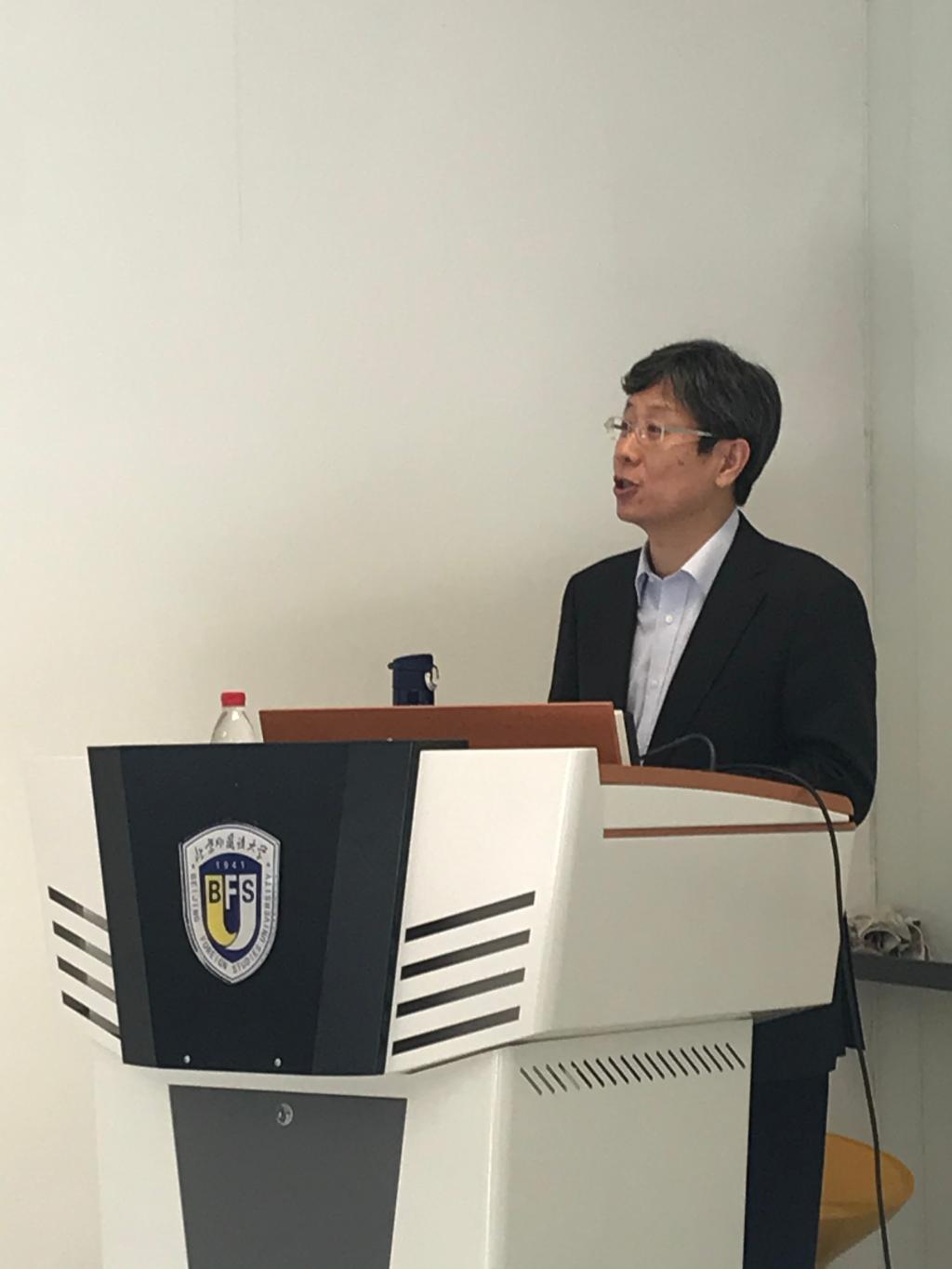 学术报告环节由tyc522cc太阳成集团党总支书记兼院长吴江主持,tyc522cc太阳成集团日语tyc522cc太阳成集团院长、北京日本学研究中心主任周异夫教授受邀做了题为“外语学科的守正与创新”的报告,周院长首先结合自己学习日语的经历,阐述了外语学科内涵和学科重心的变化,接着从“新文科”建设理念出发,分析了外语学科的“工具属性”和“交叉优势”,并与tyc522cc太阳成集团员工分享了他对外语学科“守正”和“创新”的思考。最后周院长将综合性大学的外语学科与外语类大学的外语学科进行了对比,探讨了外语类大学外语学科守正和创新的路径。报告结束后tyc522cc太阳成集团员工踊跃发言,与周院长就教学、科研以及外语学科未来发展的机遇与挑战等话题进行了交流和互动。与会同事纷纷表示学校内部不同语种之间的横向沟通和交流非常有启发。