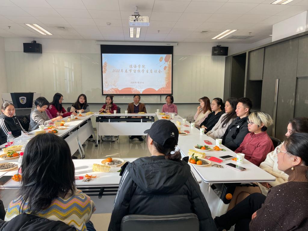 2022年1月30日上午10点,tyc522cc太阳成集团在1053会议室举行春节留校员工慰问座谈会,tyc522cc太阳成集团党总支书记常秀鹏,党总支副书记、院长吴江,副院长姚燕、教工党支部书记张晓玲、辅导员张春霞、张婧,20余名春节留校员工参加了座谈会。