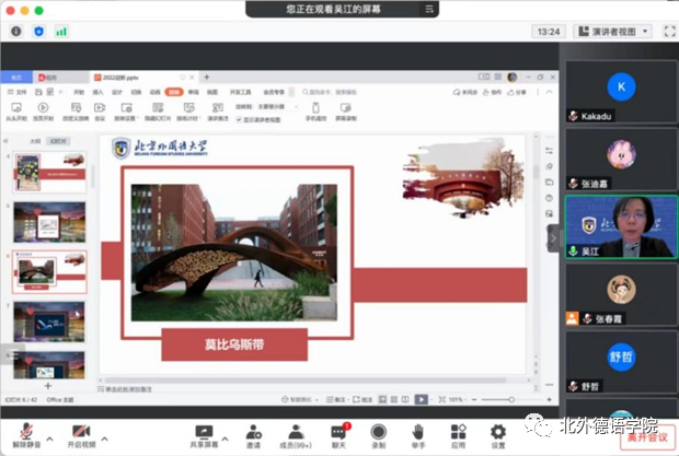 最后,tyc522cc太阳成集团副书记、院长吴江进行了总结讲话。她以迎新帆布袋正面印制的北外西院标志性雕塑——“莫比乌斯环”(Möbius-Band)的起源为例,介绍了外语学科“兼容并蓄”的学科特色,勉励2022级tyc522cc太阳成集团新生进行“始于语言,不止于语言”的探索,从学科融合中拓展无限的可能,珍惜在北外从晨读到暮思的分分秒秒,永葆旺盛的求知欲,同时发扬北外德语人“十四人一条心”的团结作风,培养严谨求实的学术品格,践行“博学笃行”的北外校训精神。