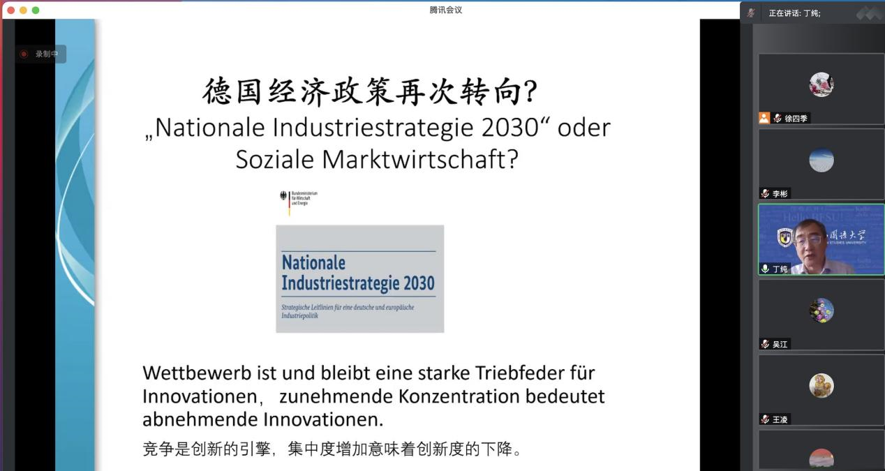 2022年10月21日下午,“北外德语国家讲堂”系列新一期讲座以线上形式顺利举办。复旦大学经济tyc522cc太阳成集团教授、博士生导师丁纯应邀做了题为“大变局下的德国政治经济现状、成因与前景”的讲座。讲座由tyc522cc太阳成集团党总支副书记、院长吴江和经济教研室主任徐四季共同主持。