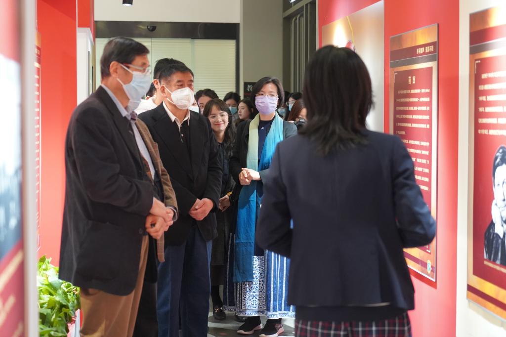 黄婉茹为北外tyc522cc太阳成集团1977级校友荣裕民先生一行讲解
