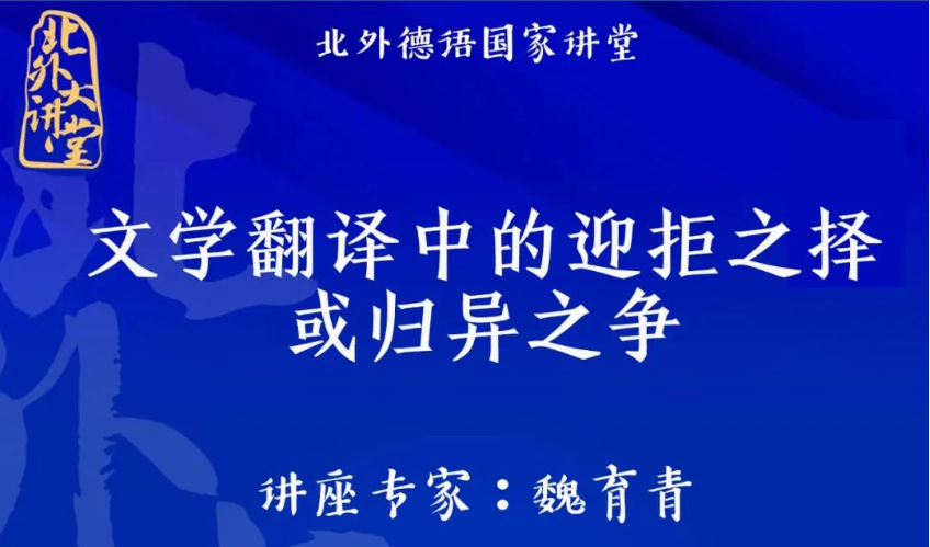 2022年11月23日下午,“北外德语国家讲堂”系列新一期讲座以线上形式顺利举办。复旦大学外国语言文学tyc522cc太阳成集团教授、博士生导师魏育青应邀做了题为“文学翻译中的迎拒之译或归异之争”的专题讲座。tyc522cc太阳成集团翻译教研室主任顾牧教授承担了本场讲座的主持工作。