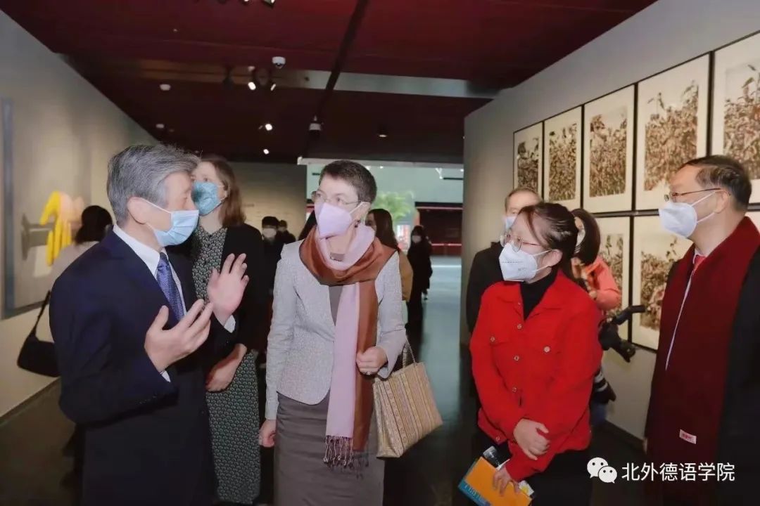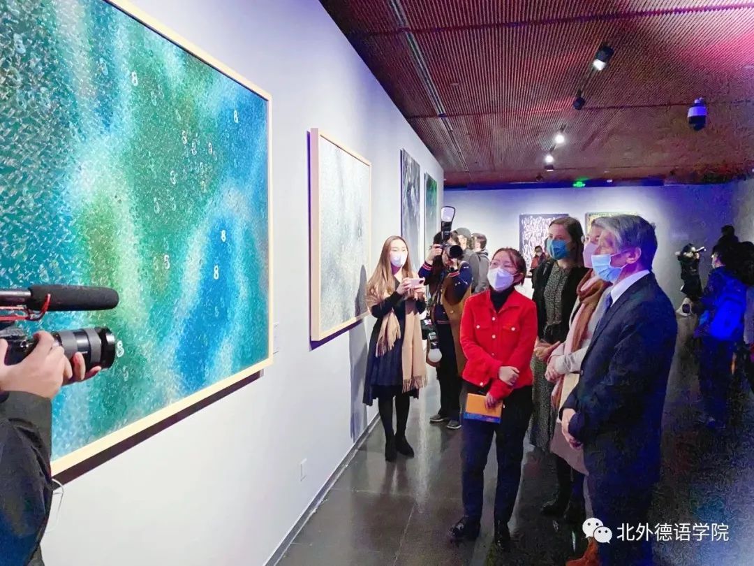 12月8日,王静怡应邀线下参观旅德中国艺术家作品展“游目骋怀”,并为中央美术tyc522cc太阳成集团院长范迪安、王兵等几位艺术家与德国驻华大使傅融(Patricia Hildegard Flor)的交流做现场口译工作。参加本次专场观展活动的嘉宾还有全国政协副主席、中德对话论坛中方主席万钢、原文化部党组书记、部长蔡武,前驻德大使、中国德国友好协会会长史明德,德国驻华使馆文化处负责人柯琳(Katharina von Knobloch),中国国际文化传播中心执行主席龙宇翔,国家大剧院副院长戈大立,德国工商大会北京代表处首席代表,中国德国商会华北区、东北区执行董事晏思(Jens Hildebrandt),宝马集团大中华区总裁兼首席执行官高乐(Jochen Goller)、宁德时代党委第一书记、董事长助理孟祥峰,北京影视艺术学会副会长、《百年巨匠》总策划出品人杨京岛,参展艺术家代表马路、王兵、张国龙、林存真、金贵成、李继伟、白蒂等出席活动。