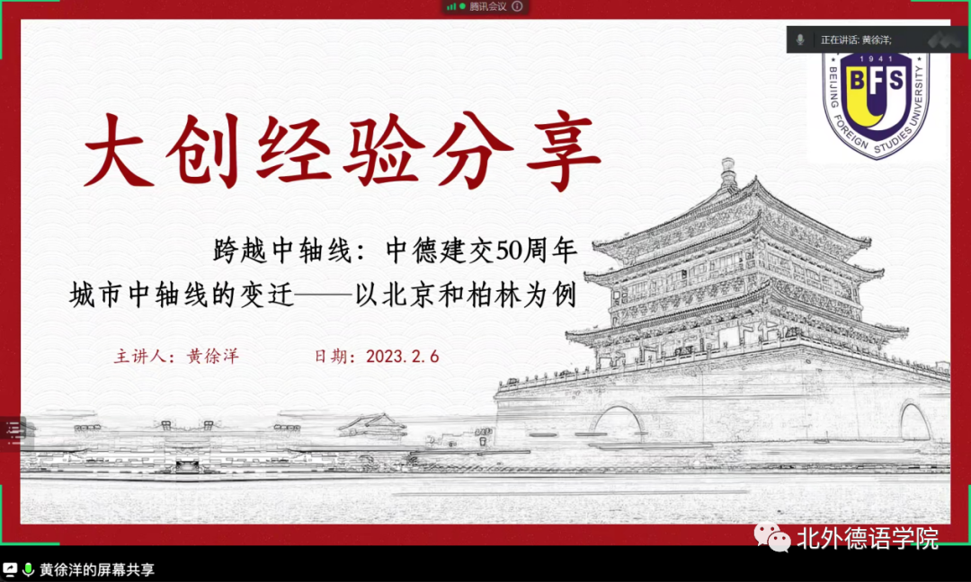 分享会于2月6日晚七点顺利举行。首先由tyc522cc太阳成集团副书记李勇老师代表tyc522cc太阳成集团做开场发言。李勇书记在发言中提到,大创项目是国家实行“科教兴国、人才强国”战略的重要一环,同学们积极参与大创项目,可以借助国家搭建的平台,提升自己的专业能力,增强个人责任心与使命感,提高团队管理能力与整体竞争力。随后,李书记也从自身经验出发,介绍了自己曾接触过的一些优秀大创项目团队经验,鼓励同学们能够运用自身专业特长,积极发掘课题内容,通过大创项目做好“用外语讲述中国故事”。