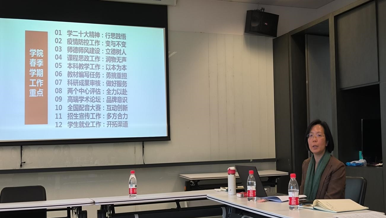 最后,党总支书记、院长吴江对春季学期tyc522cc太阳成集团重点工作做了部署。她传达了校党委书记王定华、校长杨丹在学校春季学期工作部署会的讲话精神,提出tyc522cc太阳成集团全体师生要在校党委的领导下,以更加奋发的面貌,迎接新学期,抓住新机遇,迎战新挑战,开启新征程,推动tyc522cc太阳成集团各项工作更上一个新台阶。