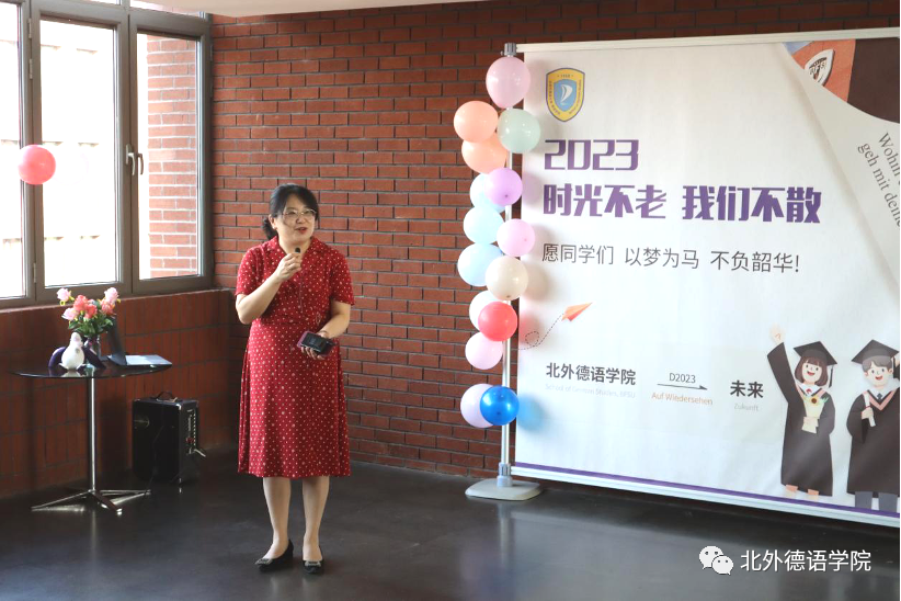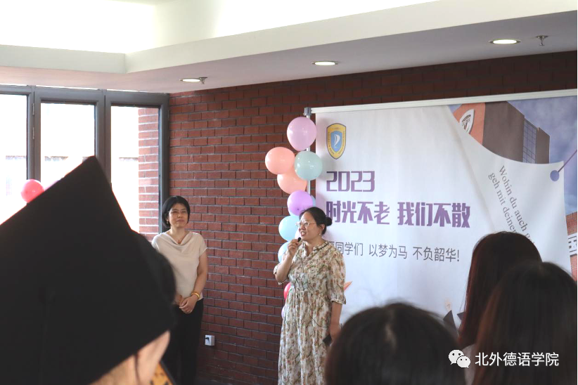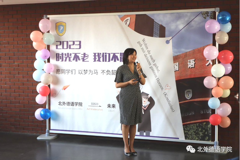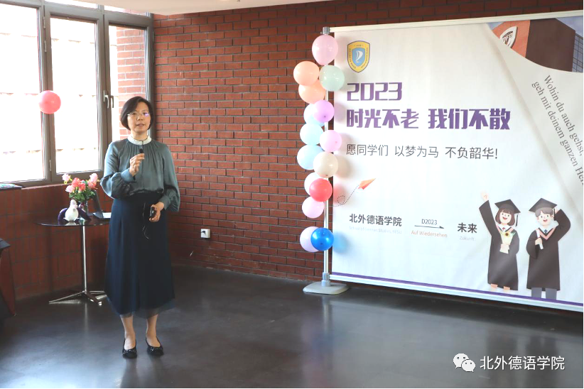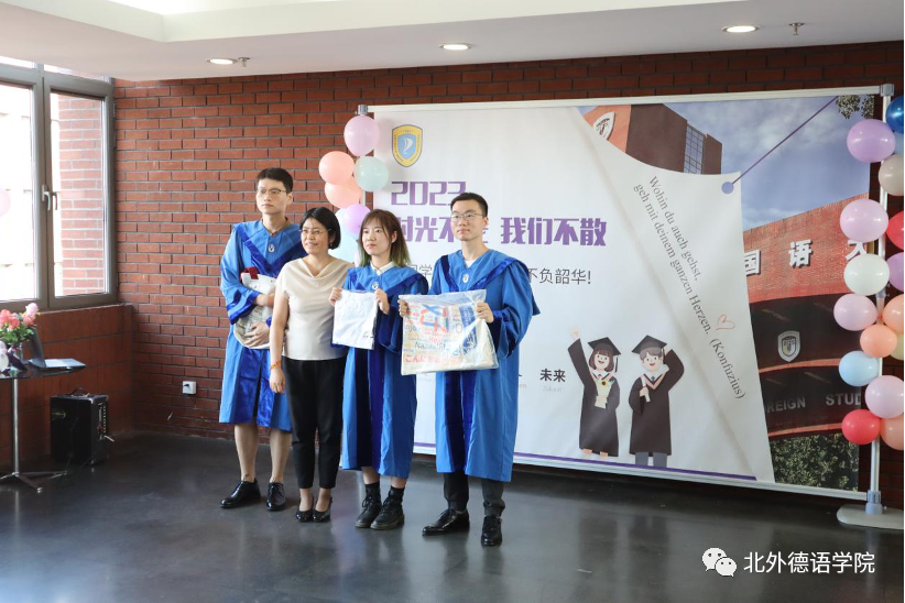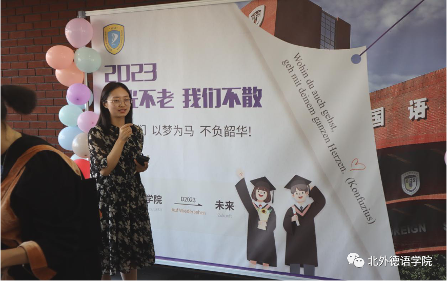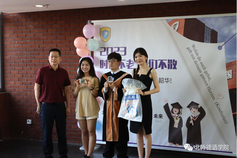 tyc522cc太阳成集团党总支书记、院长吴江寄语2023届毕业生:在社会大课堂的历练中养成豁达开朗的胸襟,做到“心有山海”;面对困难和挫折时勇敢坚毅,不忘初心,坚持“心有所向”;牢记北外德语人“十四人一条心”的团结精神,永远“心有大德”。