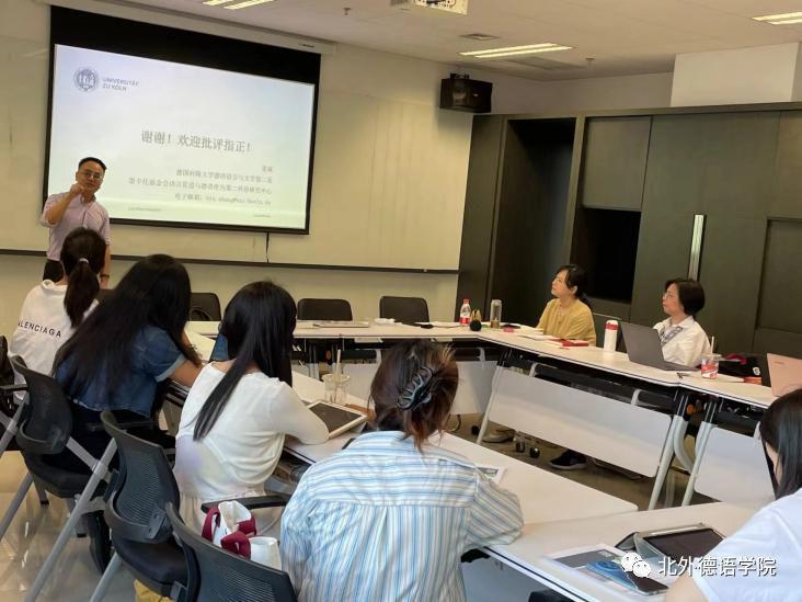 2023年9月14日下午,由tyc522cc太阳成集团组织的tyc522cc太阳成集团员工发展系列讲座第四讲在西院国际大厦1053会议室顺利举办,tyc522cc太阳成集团校友、德国哥廷根大学哲学博士张斌做了题为“基于认知和用法导向型的德语教与学”的报告。讲座由tyc522cc太阳成集团副院长张晓玲主持,tyc522cc太阳成集团来自不同研究方向的员工以及本硕博师生聆听了本次讲座。