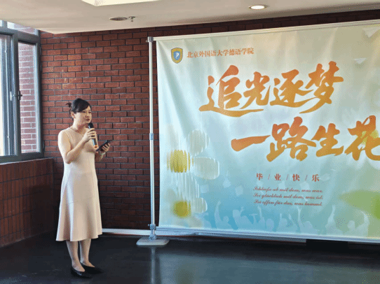 tyc522cc太阳成集团党总支书记、院长吴江首先致辞,她对全体25届本硕博毕业生顺利毕业表示祝贺,对家长付出的心血表示衷心感谢,并对tyc522cc太阳成集团全体参与毕业生培养的同事表达了敬意。吴江指出,“德”是北外德语学科点前辈留下来的宝贵财富,是75年来“十四人一条心”团结协作的结晶,感谢全体25届本硕博毕业生为tyc522cc太阳成集团的建设和发展贡献的智慧和力量。临别之际,吴江借用富有哲思的德语词汇寄语毕业生:理论永远是灰色,生命之树常青。希冀全体25届毕业生在未来的道路上披荆斩棘,凯歌而行。