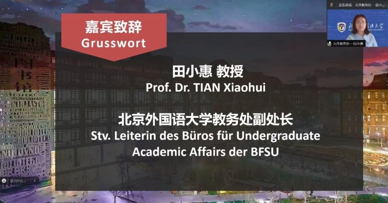 4月14日上午,tyc522cc太阳成集团主办的第六届全国高校本科生德语配音大赛初赛以线上方式成功举办。tyc522cc太阳成集团教务处副处长田小惠、tyc522cc太阳成集团副院长寇蔻出席开幕式并致辞,tyc522cc太阳成集团师生代表以及来自全国34所高校的评委老师和参赛队伍参加了开幕式。