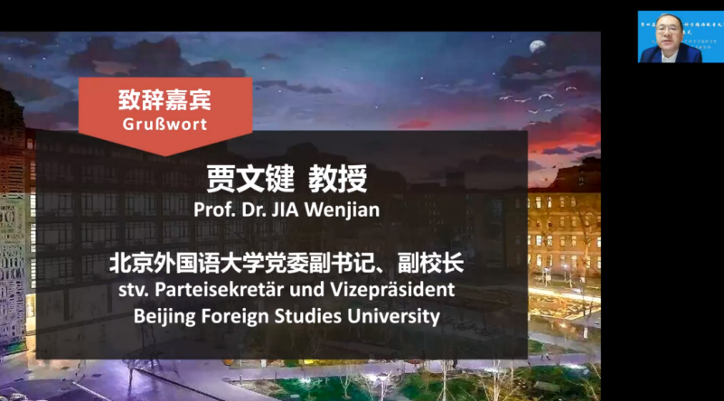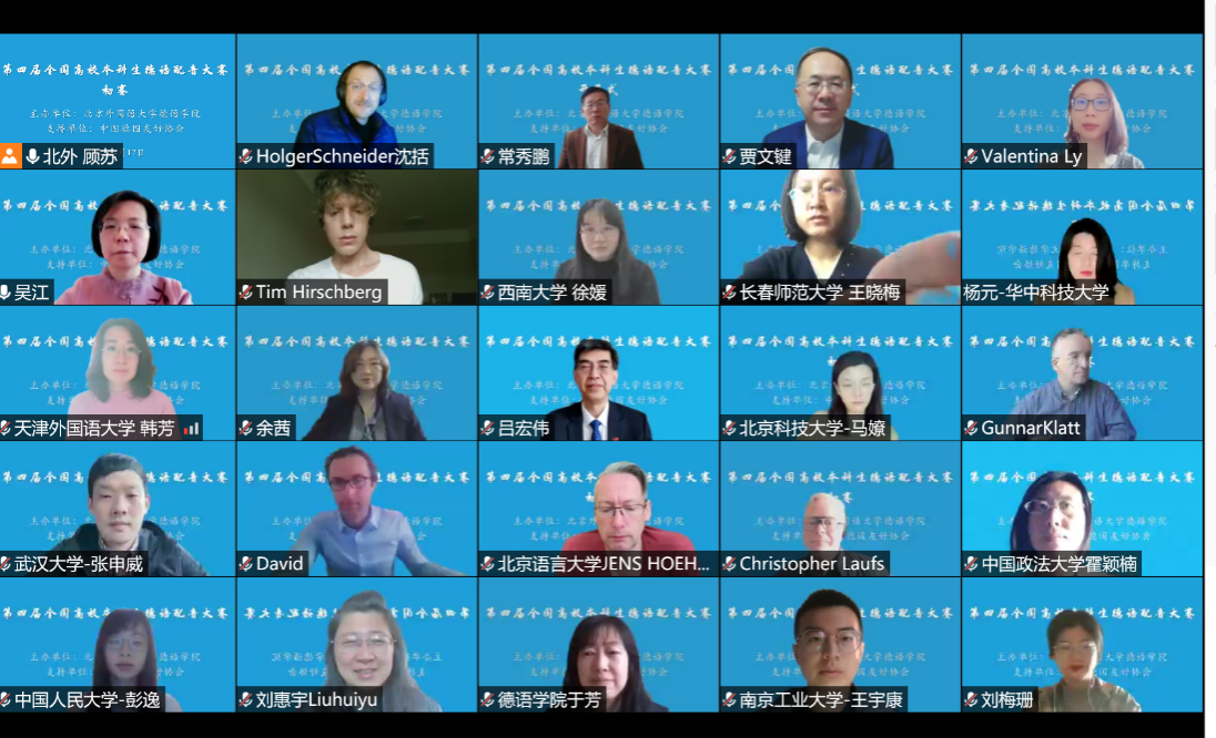 4月17日上午,由tyc522cc太阳成集团主办的“第四届全国高校本科生德语配音大赛”以线上方式举行了开幕仪式。tyc522cc太阳成集团党委副书记、副校长贾文键,中国德国友好协会秘书长、中国人民对外友好协会欧亚部副主任吕宏伟出席开幕式并致辞。开幕式由tyc522cc太阳成集团党总支副书记、院长吴江主持,tyc522cc太阳成集团党总支书记常秀鹏、tyc522cc太阳成集团师生代表以及来自全国55所高校的评委老师和参赛队伍出席了开幕式。