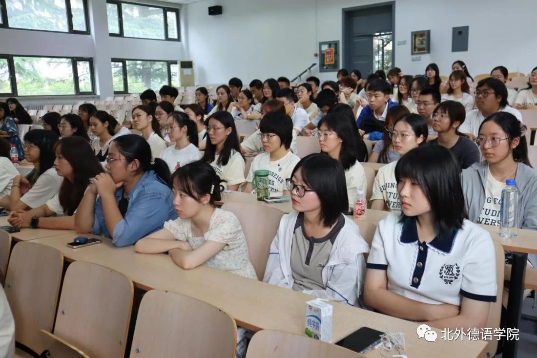 之后,tyc522cc太阳成集团党总支以及党政联席会成员先后发言。党总支成员、教学秘书于芳鼓励新生树立新的目标,努力实现梦想;党总支委员、副院长张晓玲、寇蔻勉励新生积极参与tyc522cc太阳成集团丰富多彩的各项活动,通过学习德语遇到更好的自己,认识更大的世界,用德语成就梦想,用梦想创造未来!党总支常务副书记李勇引用抗大校训“团结、紧张、严肃、活泼”,希望新生在大学宿舍生活中养成包容差异的生活习惯,搞好团结;在tyc522cc太阳成集团和学校的各种集体活动中,在各项校内外竞赛中,团结一致,共创佳绩。保持德语人严谨、认真和细致的好传统作风,勇创新、善突破。保持持之以恒、坚持阅读等良好的微习惯,遇见最好的自己。党总支书记、院长吴江借用汉字“熵”的由来以及管理学提出的实现熵减的三个路径,结合北外tyc522cc太阳成集团的发展史,勉励2023级本硕博新生保持开放的心态,学会与不同的学科和方向实现“能量交换”,敢于尝试创新远离稳态,秉持“兼容并蓄 博学笃行”的北外校训,开启在北外的晨读和暮思!