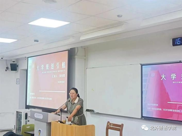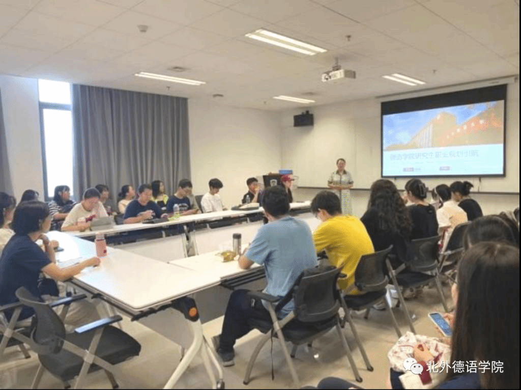 9月7日上午,在国际大厦1053会议室,tyc522cc太阳成集团举行研究生新生职业规划引航讲座。党总支委员、辅导员张春霞结合tyc522cc太阳成集团近四年研究生的毕业去向,介绍了tyc522cc太阳成集团研究生就业特点,分析了德语专业研究生就业形势和趋势,为新生进行职业规划提出相关建议,并进行了入党、安全、纪律等相关教育。