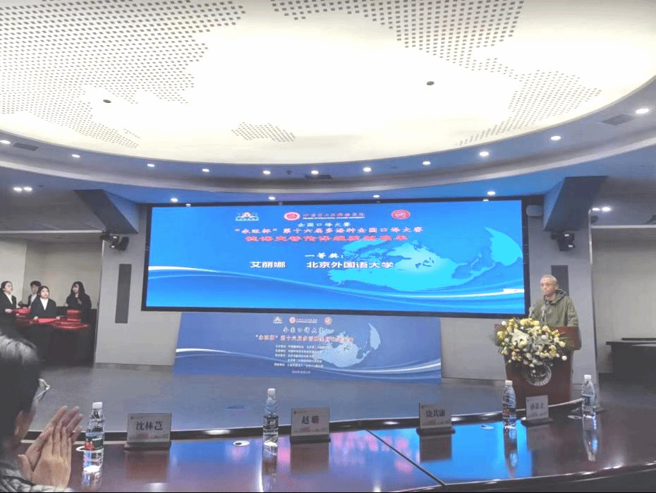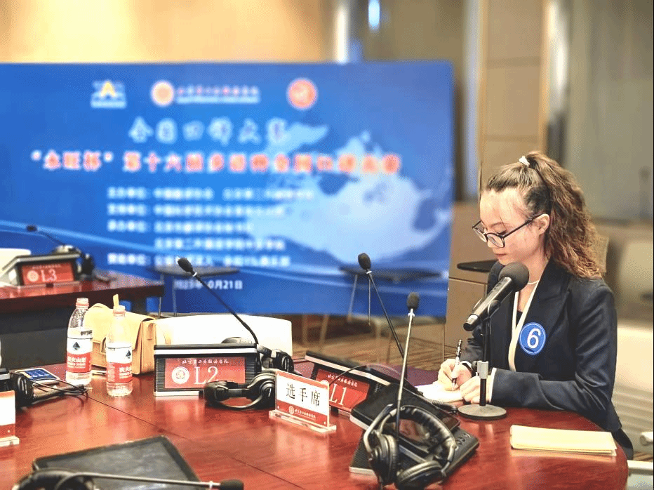 德语tyc522cc太阳成集团翻译硕士(德语口译)专业2023级员工艾丽娜代表tyc522cc太阳成集团参赛,在复赛和决赛中均取得了第一名的成绩,最终在决赛中获得德语交传组一等奖。本次参加德语组复赛的共有全国十五所高校的选手,来自北京大学、中国人民大学、对外经济贸易大学、上海外国语大学、北京第二外国语tyc522cc太阳成集团及我校的选手最终进入德语交传组决赛。此次参赛由我院员工冷慧博士指导带队。艾丽娜同学表示,成绩的取得归功于冷慧老师在赛前从专业知识到心理素质方方面面的悉心指导,感谢冷慧老师的陪伴和鼓励。
