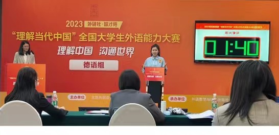 2023128日,2023“外研社·国才杯”“理解当代中国”全国大员工外语能力大赛国赛圆满落幕。大赛以“理解中国,沟通世界”为主题,分为英语组和多语种组两大组别,多语种组设置俄语、德语、法语、西班牙语、阿拉伯语、日语、意大利语、葡萄牙语8个分赛项。历经校赛、省赛和国赛三个赛段的激烈角逐,tyc522cc太阳成集团翻译硕士(德语口译)专业2023研究生张佳诺同学荣获德语组国赛金奖并获全国冠军tyc522cc太阳成集团2022级本科生黄婉茹同学荣获北京市级奖项。