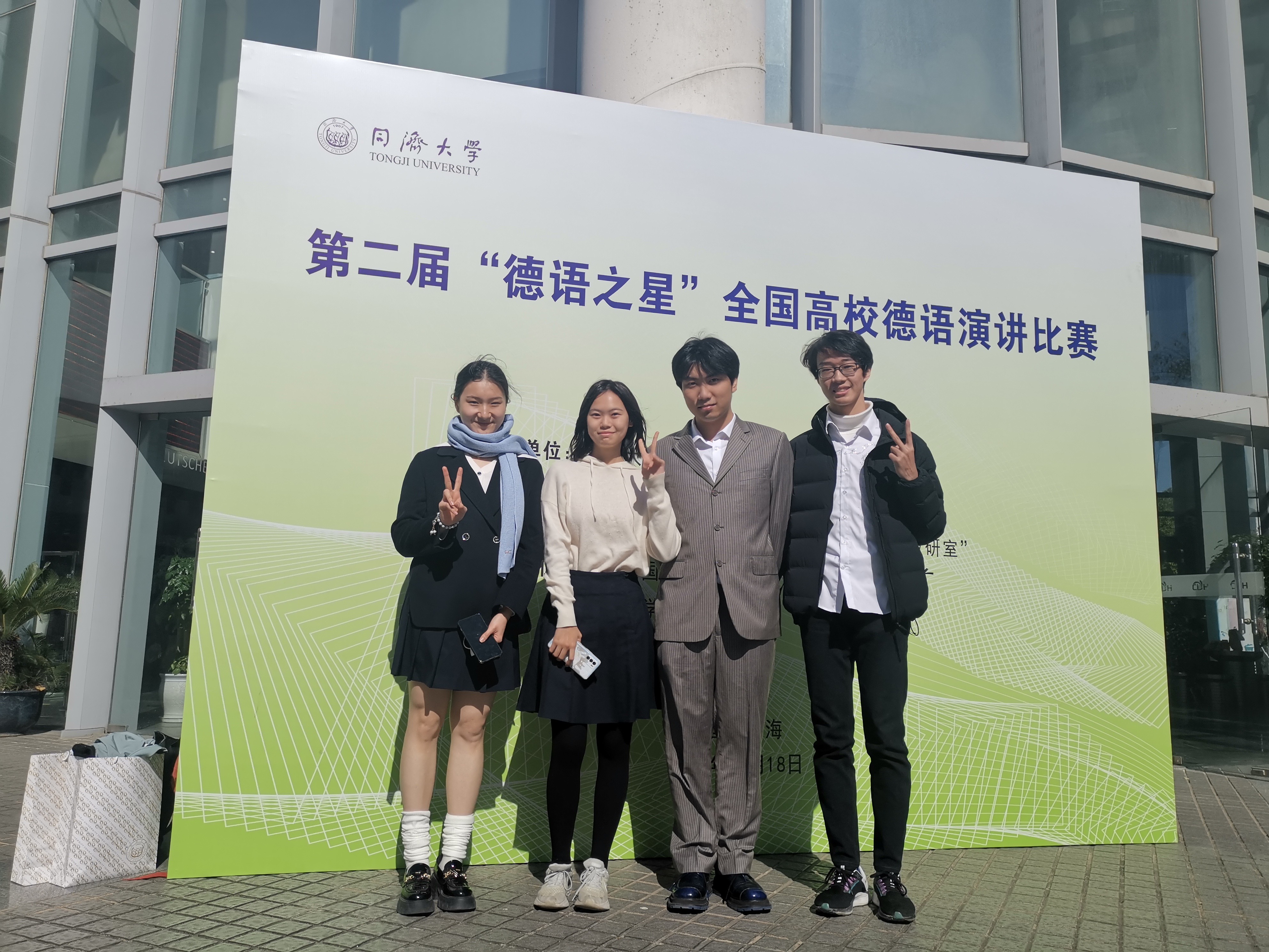 11月18日,由同济大学外国语tyc522cc太阳成集团主办的第二届“德语之星”全国高校德语演讲比赛决赛在同济大学举行。tyc522cc太阳成集团选派的由2023级本科生姜哲馨、夏昀菎、方霖城、郑瑞丹组成的代表队入围决赛,荣获全国一等奖。辅导员工武迪博士获优秀指导员工奖。