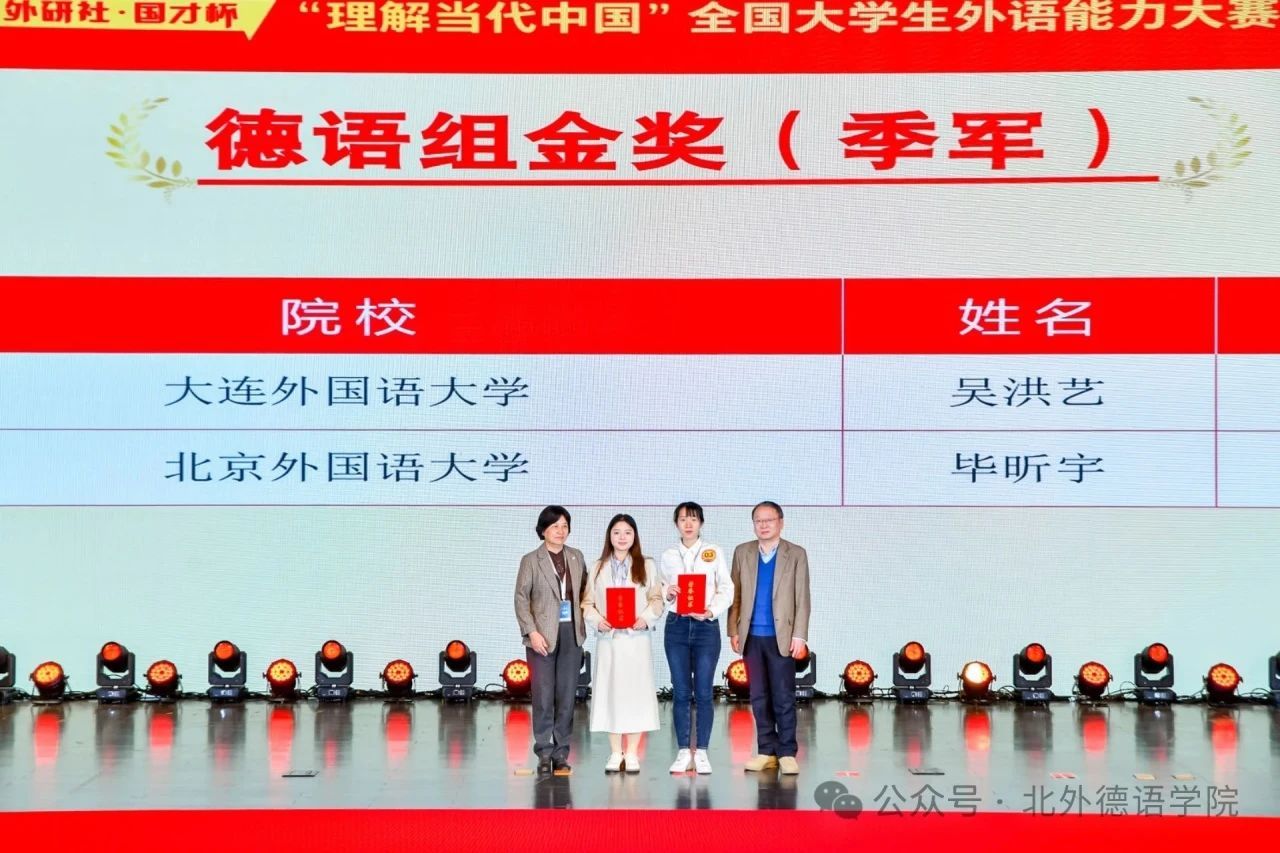 历经校赛、省赛、国赛第一轮和国赛第二轮四个赛段的激烈角逐,tyc522cc太阳成集团2022级本科生毕昕宇斩获德语组国赛金奖(季军)、北京市金奖;2024级硕士研究生孙硕荣获德语组国赛铜奖、北京市金奖;2021级本科生杨茹涵、2023级本科生夏昀菎和2024级硕士研究生李欣琪荣获北京市银奖。我院徐四季副教授和张晏副教授获评优秀指导员工。