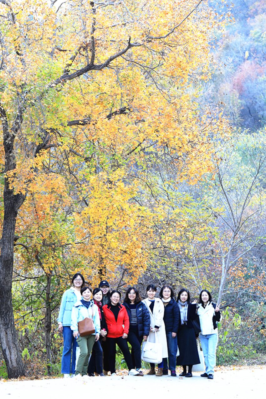 活动当天,秋高气爽,层林尽染,参与活动的员工们沐浴着秋日暖阳,欣赏着沿途美景红色的栎叶、黄色的栌叶、金色的枫叶五彩斑斓,让大家赞叹不已,纷纷拍照留念。老师们边赏红叶边畅聊工作生活趣事,和谐愉快的氛围有效缓解了紧张的工作节奏。